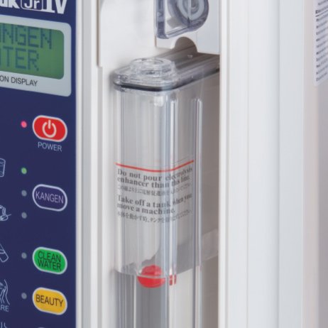 built-in tank for the electrolysis enhancer saves you the trouble of putting in the electrolysis enhancer which is necessary to obtain strong acid water and strong Kangen Water, and allows you to produce those kinds of water steadily and continuously that has excellent effects.